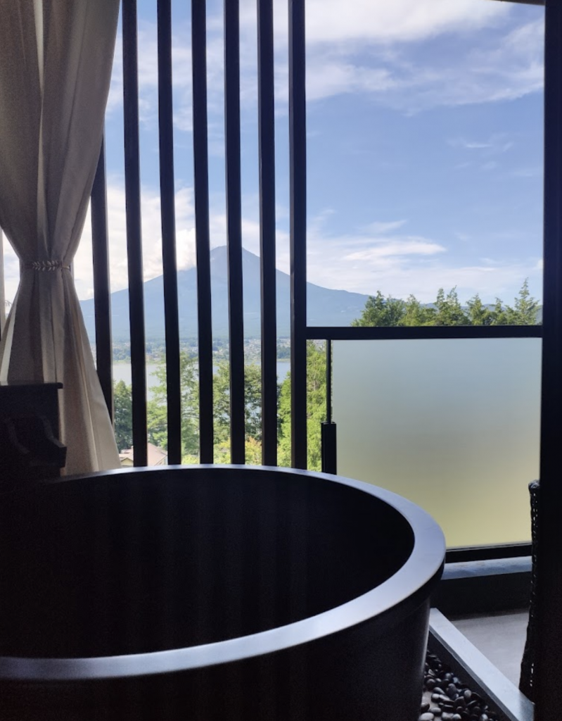 Hot spring bath on the balcony and a Fuji view? Yes, please! There are a lot of hotels with private balcony onsens around Lake Kawaguchi.